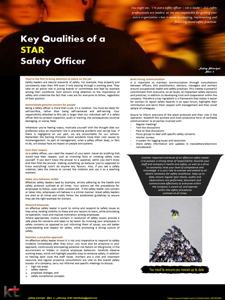 Qualities OF A SAFETY OFFICER Which Qualities should be in SAFETY OFFICER HSE TRAINER What Are The Qualities Of A Safety Officer that’s why safety officers are so important. a safety officer identifies safety hazards, investigates them thoroughly, and controls them before someone gets hurt. Their job is to prevent workplace injuries and illnesses by identifying risks, enforcing safety. A great safety leader should realize their accountability for preventing hazardous. 10 attributes of a safety officer : the. What Are The Qualities Of A Safety Officer.